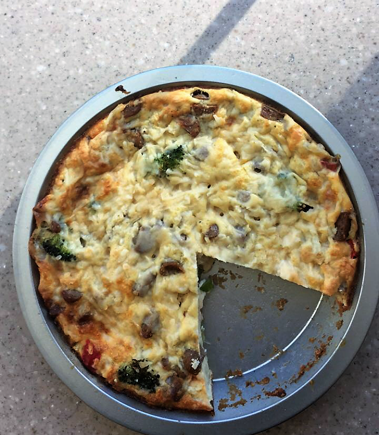- Chop up veggies and sausage, place broccoli and cauliflower in a bowl with 1 tablespoon of water, heat in microwave for about 1:30. Drain water